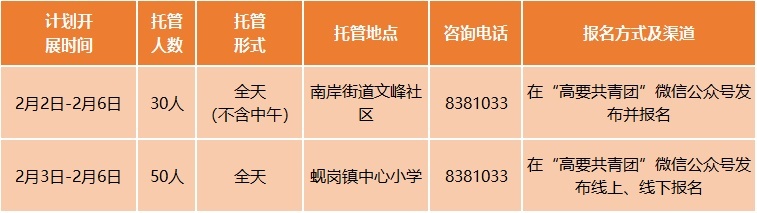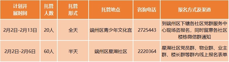 为深入贯彻落实“共青团·伙伴计划”,切实加强对新就业群体青年的政治引领和联系服务,着力解决“假期孩子看护难”的现实问题,引导和帮助小学生度过一个安全、快乐、有意义的假期,全市共青团组织联合市委社会工作部等有关单位,将在全市范围内统一部署开展寒假爱心托管服务工作。